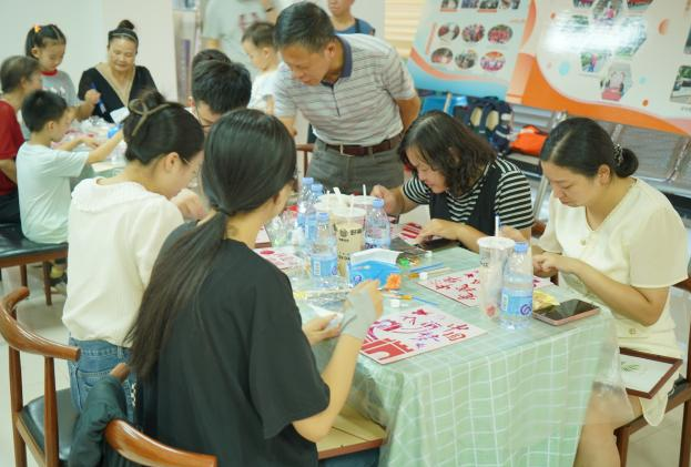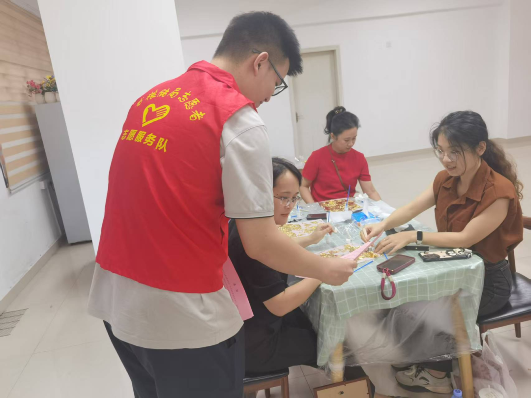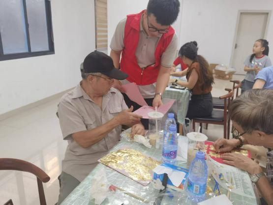 活动还设置了“金箔绘华章”非遗体验制作环节,在专业老师的指导下,参与者们兴致盎然地投入金箔画创作。从涂抹胶水到小心翼翼地贴附金箔,大家相互协作,细心操作,亲身体验了传统非遗技艺的精妙。一幅幅金光熠熠的作品不仅承载着大家对美好生活的祝愿,也表达了对祖国华诞的深情祝福,现场气氛热烈而温馨。