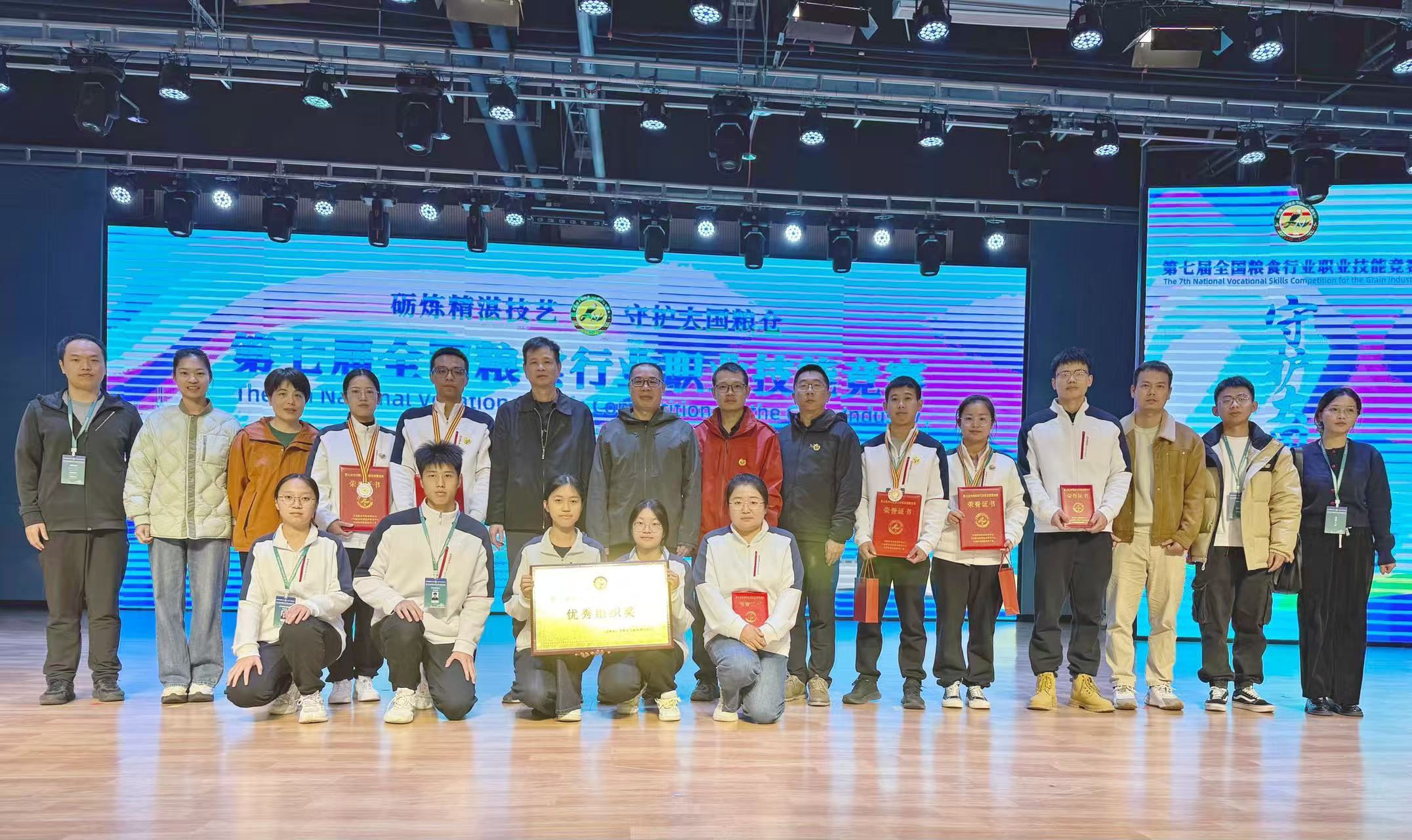 2025年11月4日至6日,第七届全国粮食行业职业技能竞赛在河南郑州举办,竞赛共设粮油保管员和粮油质量检验员两个工种7个项目,全国34支代表队354名选手同台竞技。福建代表队在竞赛中勇获佳绩,其中,2名粮油保管员获二等奖,1名粮油保管员获三等奖,1名粮油质量检验员获三等奖,同时荣获团体总分三等奖、优秀组织奖,充分展现了新时代八闽粮储人追求卓越、精益求精的工匠风采。省发改委党组成员,省粮储局党组书记、局长钟昌华领队参加比赛。