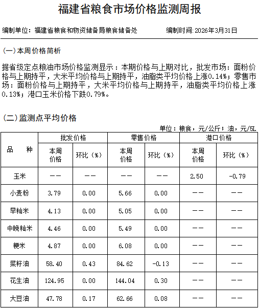 发布机构: 福建省粮储局